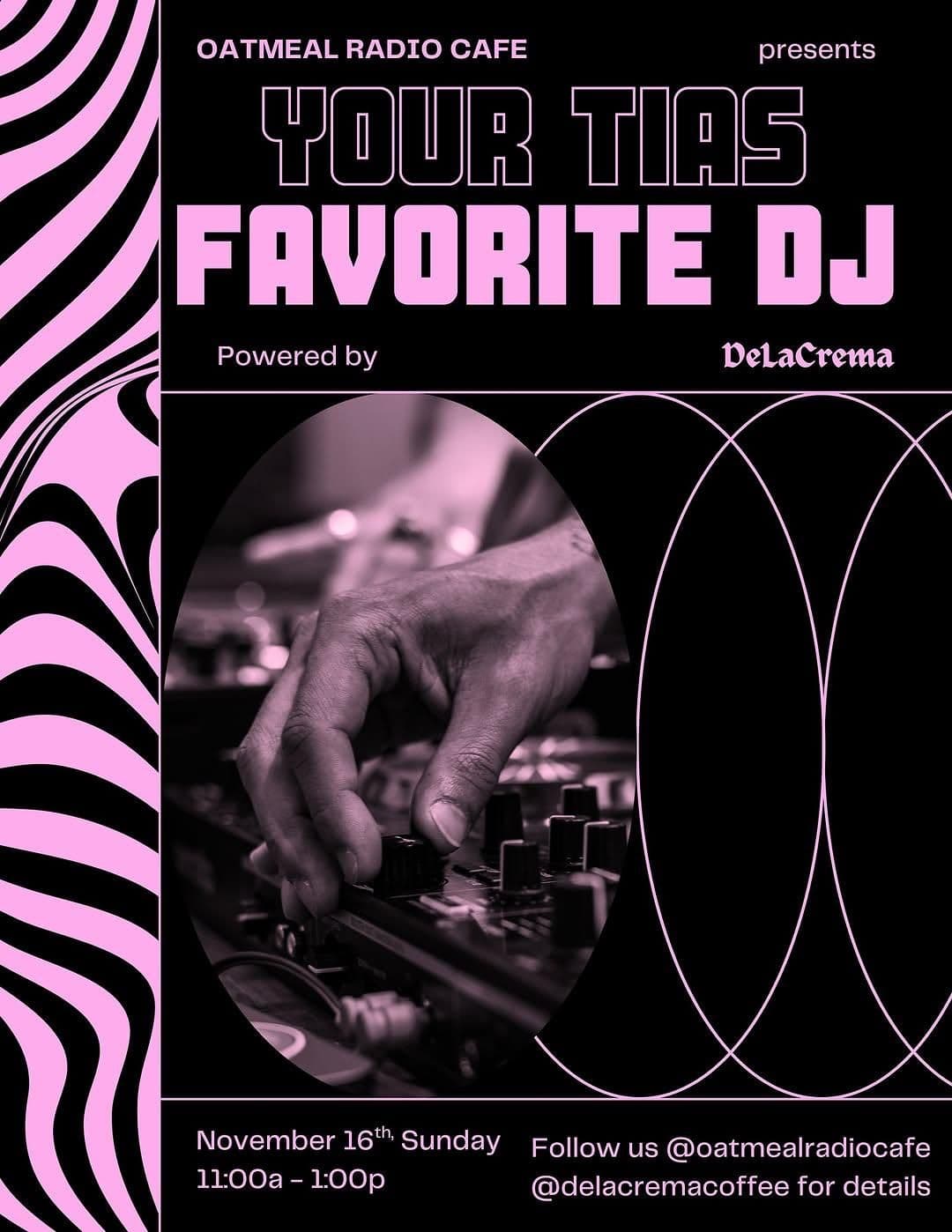 Good coffee meets good sound. Join us this Sunday Nov. 16th for a live DJ set by @johnnybeenhad Curated beats, crafted drinks, and a great atmosphere. @ Oatmeal Radio Cafe | Powered by De La Crema Coffee