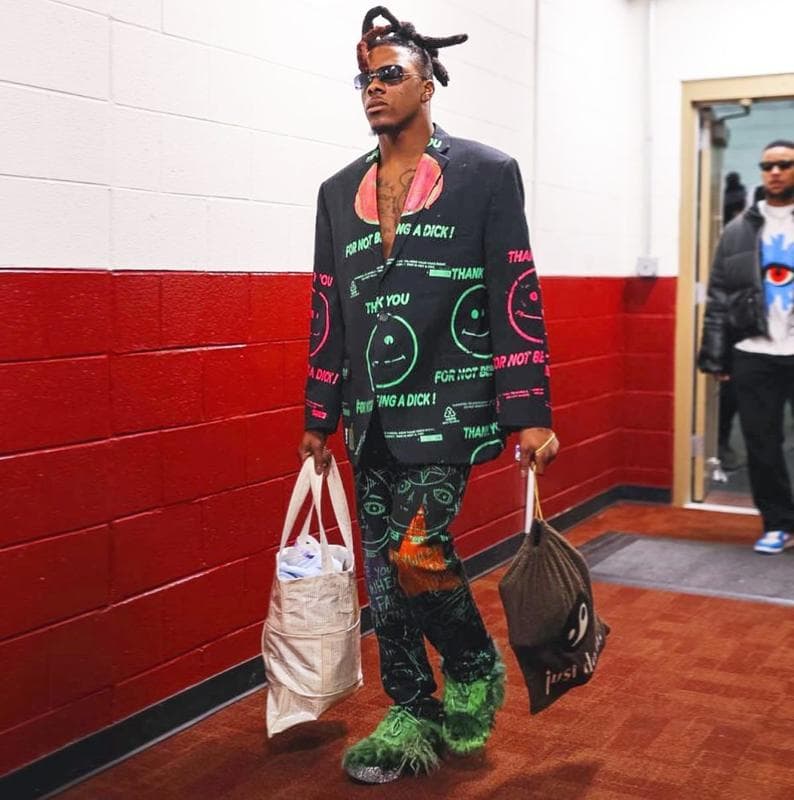 Richie James wearing a full-body Snow Milk suit